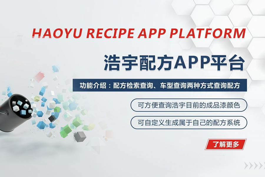 浩宇化工科技是一家極富創新并活躍于中國汽車修補漆市場的高新化工科技公司。作為中國汽車修補漆的先行者,我們長期致力于開發、制造和銷售最可靠、安全易用的高品質產品。產品涵蓋涂裝前處理產品、底漆、底色漆、面漆、清漆到調色用色母及配套輔料等,我們齊全的產品種類可以為各類汽車及相關交通工具的修補和整車的翻新及工業領域提供全面專業的色彩及涂裝解決方案。